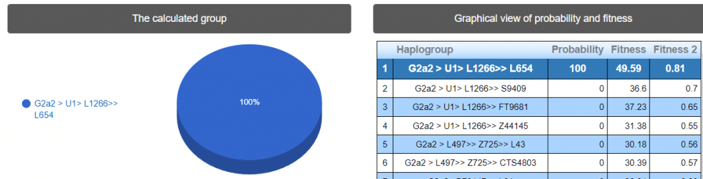 Выявлена гаплогруппа G2a2. Субклад G-L1264 >> Y141911
