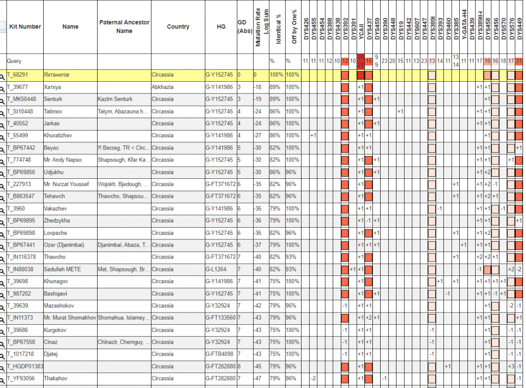 Протестирована линия известного историка Хасан Хабасович Яхтанигов, автора книги «Северокавказские тамги«.