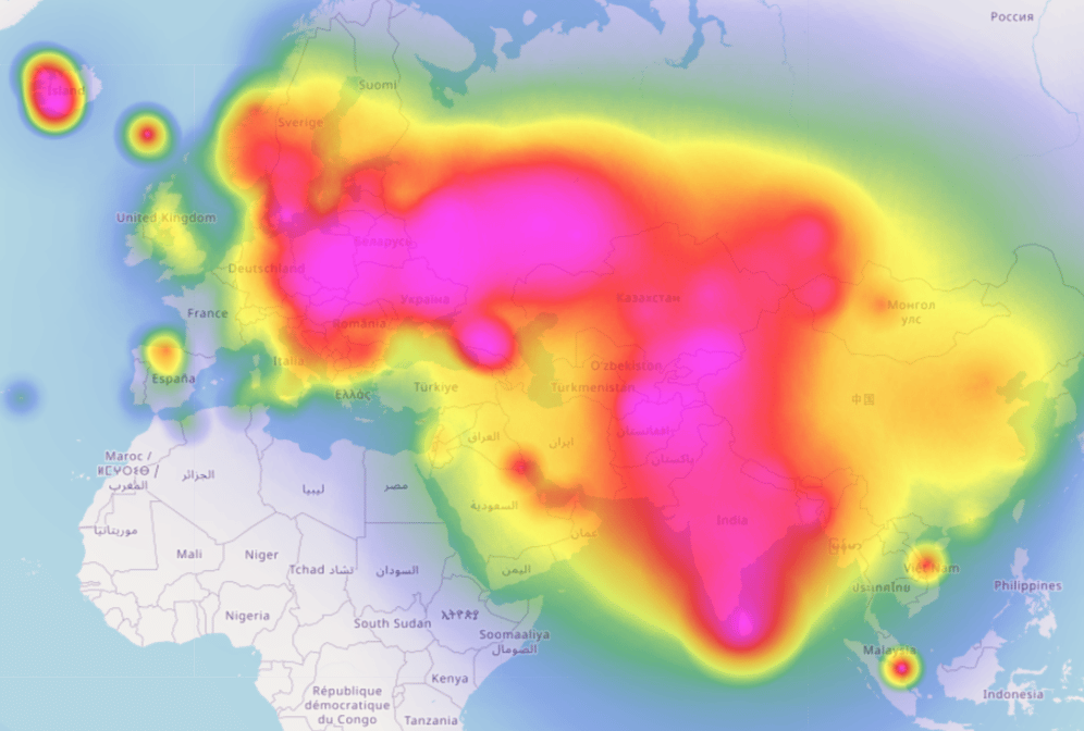 Карта распространения субклада