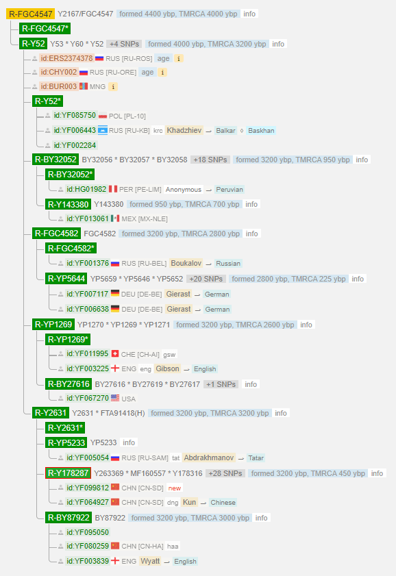 В R-FGC4547 гарантированно попадает один представитель нашего проекта — Danyal Merza (настоящая фамилия — Пщынокъуэ). У него продвинутый тест (BigY), но к сожалению его результат не виден на древе Yfull.