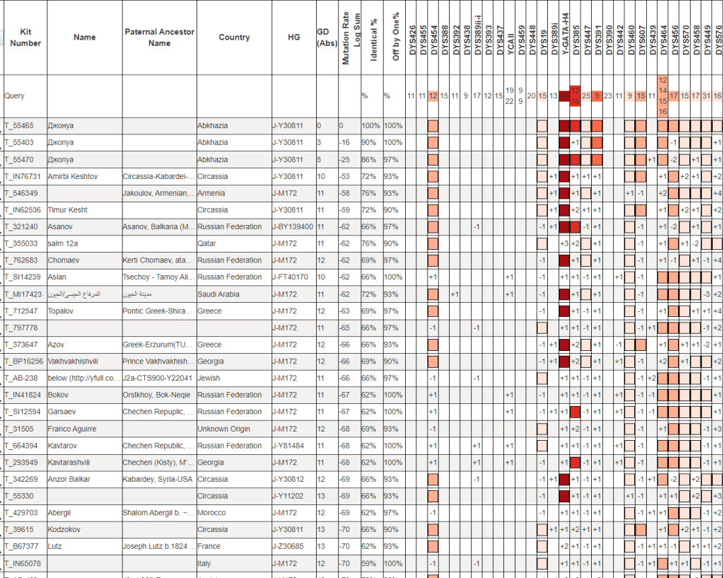 Гаплогруппа: J2a >> M67 >> Y11200 >> Y30811