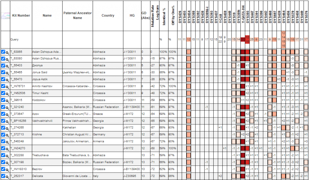 Поиск STR-совпадений в базе STR Match Finder помогает найти потенциальных родственников по мужской линии среди других протестированных из той же популяции. Мерой близости при этом служит генетическая дистанция, зависящая от числа мутационных различий