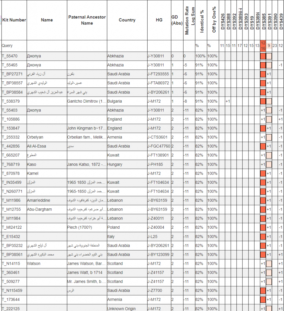 Поиск STR-совпадений в базе STR Match Finder помогает найти потенциальных родственников по мужской линии среди других протестированных из той же популяции. Мерой близости при этом служит генетическая дистанция, зависящая от числа мутационных различий