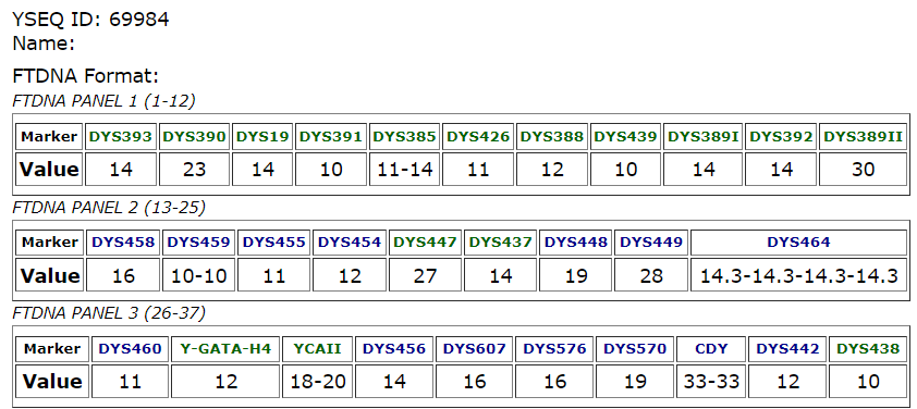 Исследовано 37 STR маркеров Y-хромосомы в лаборатории YSEQ