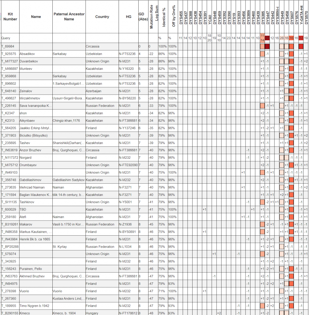Поиск STR-совпадений в базе STR Match Finder помогает найти потенциальных родственников по мужской линии среди других протестированных из той же популяции. Мерой близости при этом служит генетическая дистанция, зависящая от числа мутационных различий