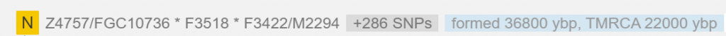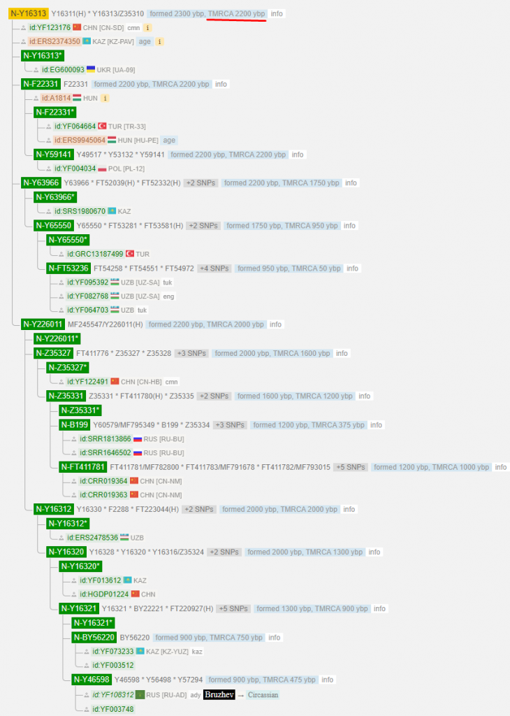 Т.е. любой кто не N находится на отдалении больше 22 тыс. от любого N. На самом деле даже больше. Но внутри N тоже за эти 22 тыс. лет образовалось множество новых ветвей. Пропустив весь этот путь обратимся к самой свежей прогнозной ветке — Y16313.