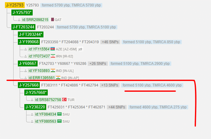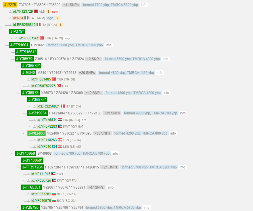 Выявлена гаплогруппа J2a, а также выявлен субклад J-L581 > J-P279