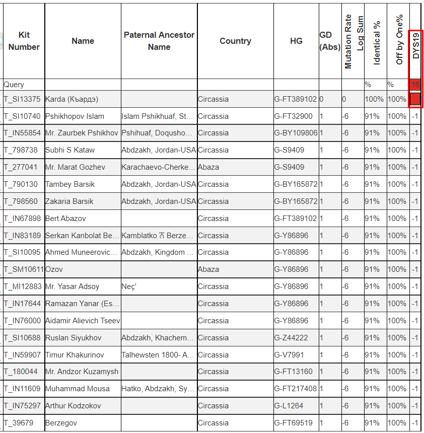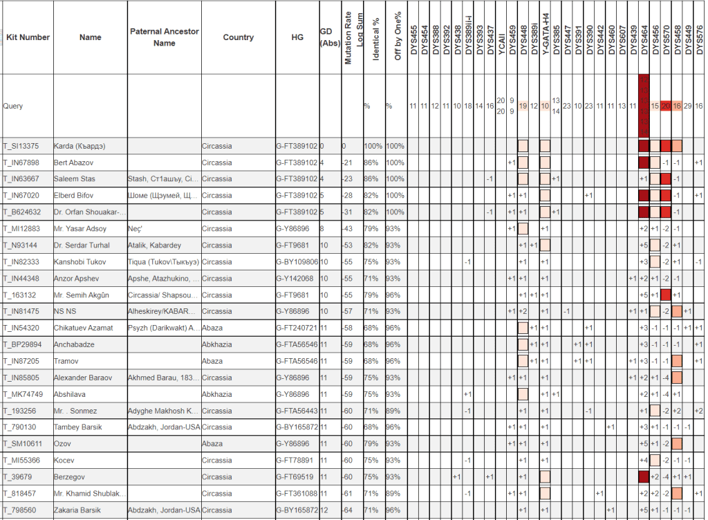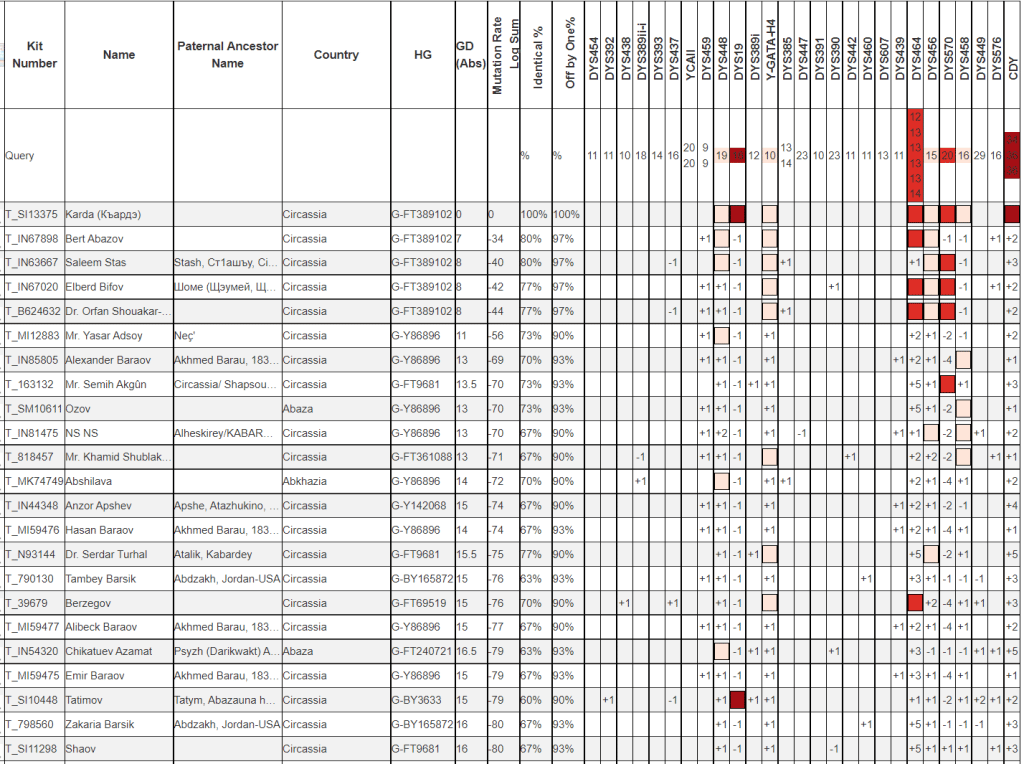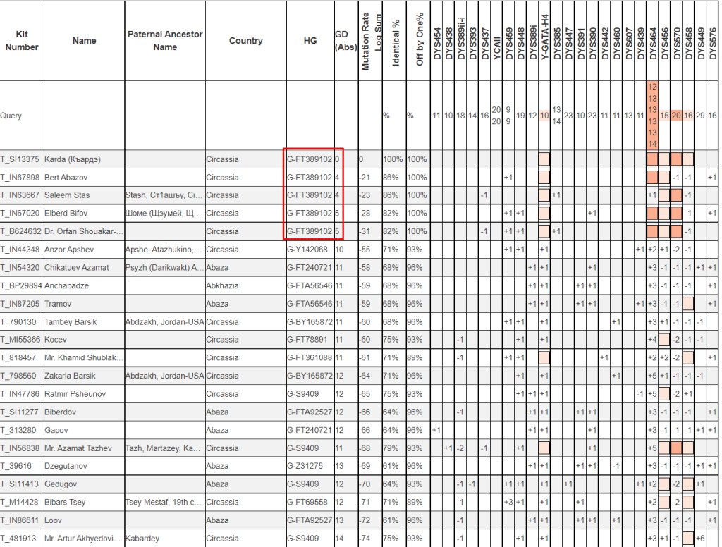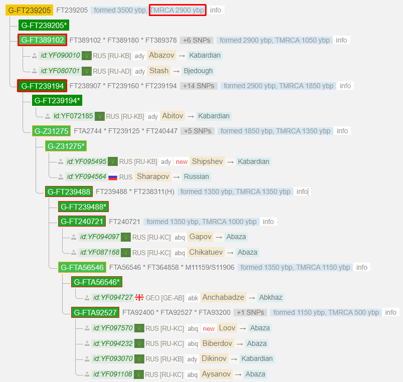 В параллельной ветке G-FT239194 сосредоточено большое число Абазино-Абхазских дворянских фамилий.