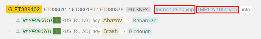 Вероятный возраст до общего предка +- 1000 лет. Кроме тех кто на скриншоте и Кардова, в данную ветку попадают еще Бифовы.