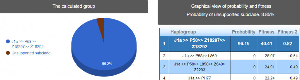 Выявлена гаплогруппа J1 . Наиболее вероятный субклад
