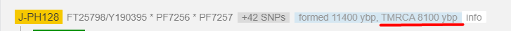 Дистанция до последнего общего предка этого субклада ~ 8 тыс. лет.