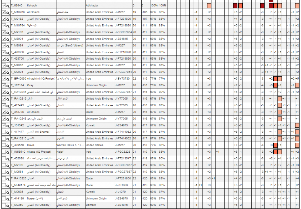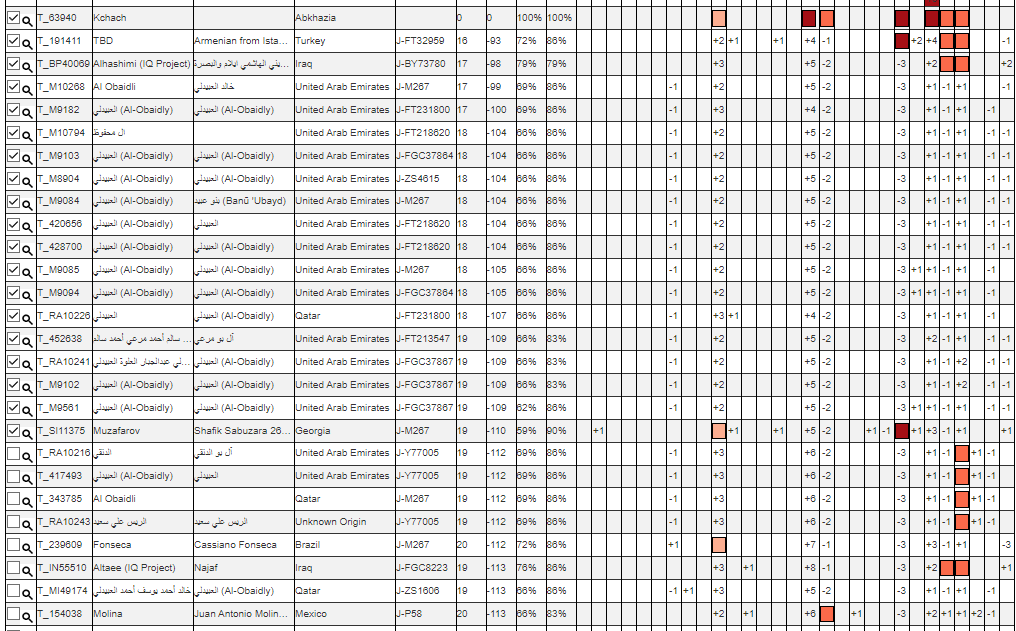 Поиск STR-совпадений в базе STR Match Finder помогает найти потенциальных родственников по мужской линии среди других протестированных из той же популяции. Мерой близости при этом служит генетическая дистанция, зависящая от числа мутационных различий