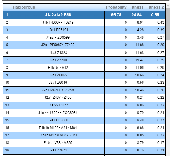 Выявлена гаплогруппа J1, наиболее вероятный субклад J-P58