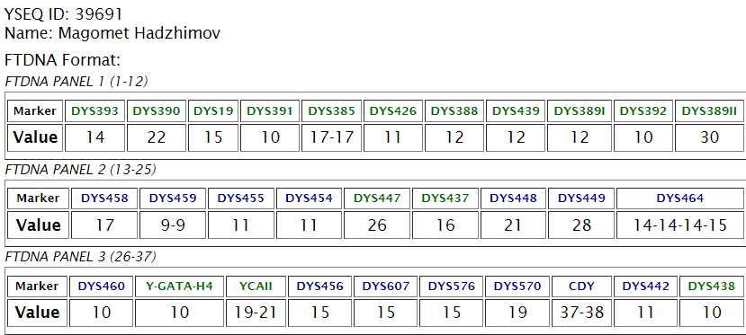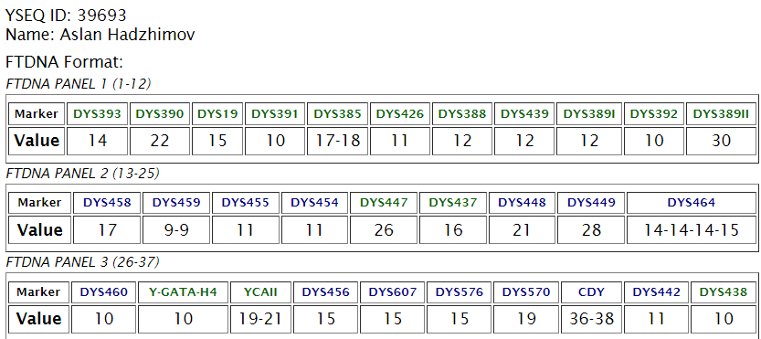 Протестировано 2 Хаджимовых у которых не было общей родословной. Оба из а. Уляп. Результаты очевидны, единое происхождение бесспорно.