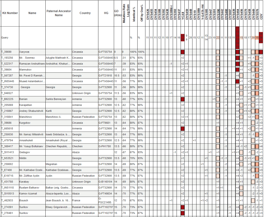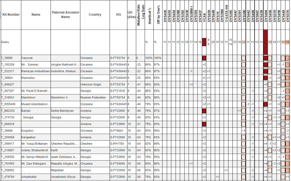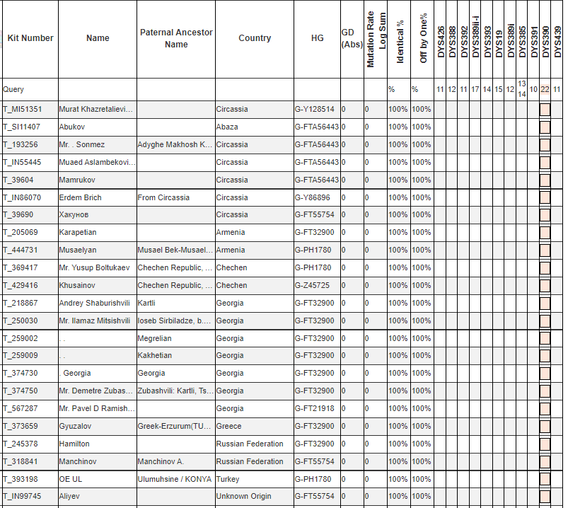 На 12 маркерах полностью совпадает с Абуковым (у него только Y12 тест)