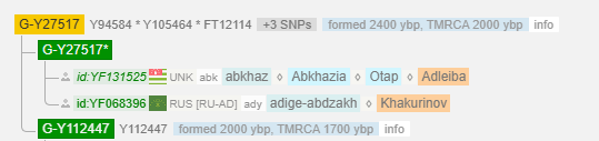Гаплогруппа G2a2. Наиболее глубокая выявленная линия G-L1264 > G-Y87806 > G-Y93425 > G-Y27517