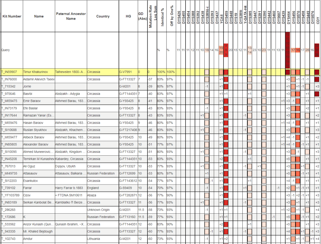 Ближайшее совпадение на глубине 2000 лет до общего предка с абхазом Адлейба.
