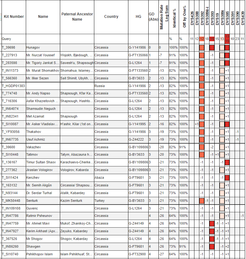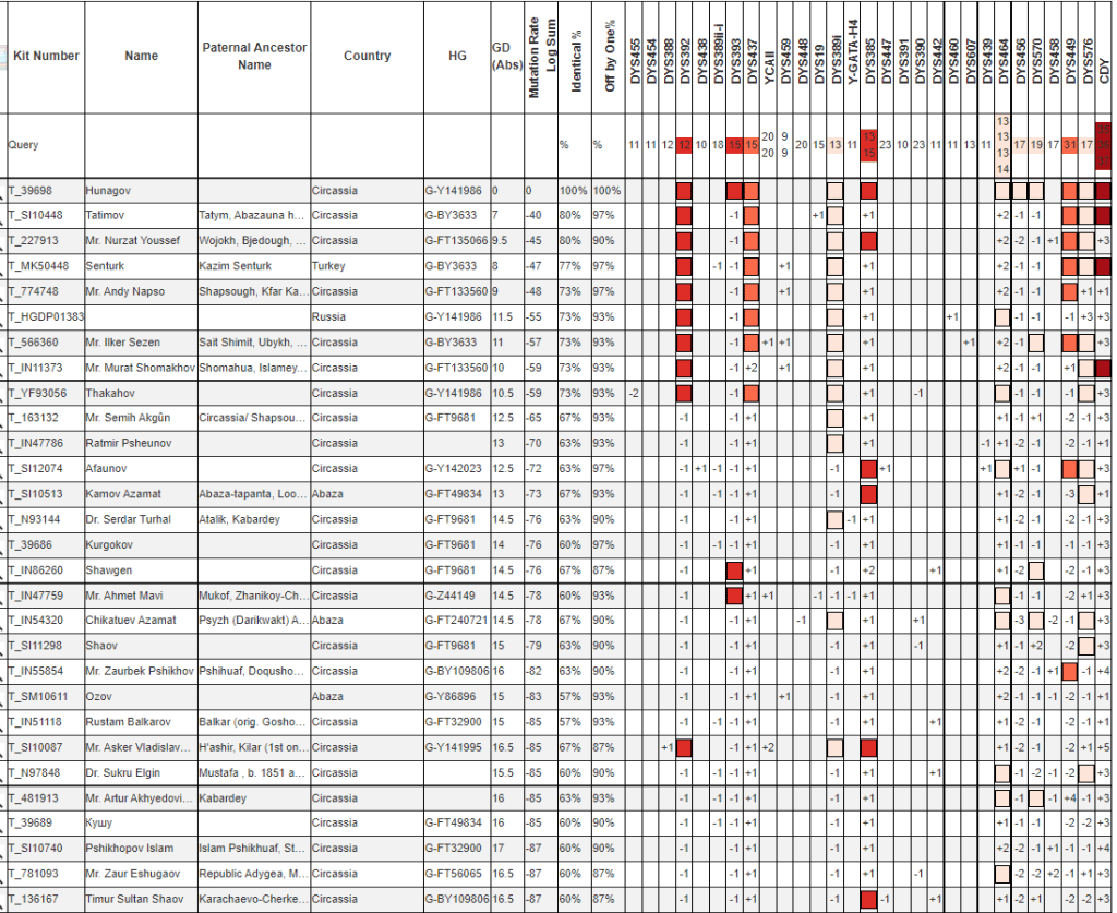 У Абадзехов процент G2a2 достигает 85%. В сравнении с менее чем 30% у Кабардинцев.
