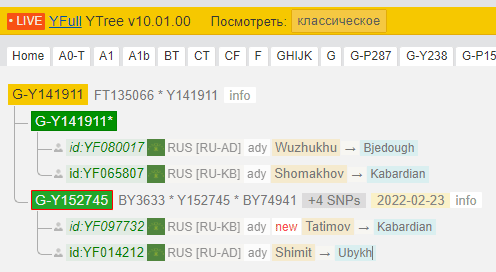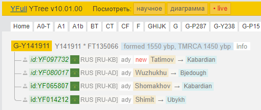 Гаплогруппа: G2a2 > G-L1264 > G-Y92354 > G-Y141911