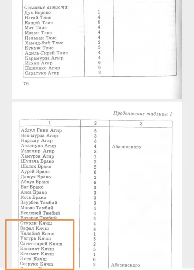 Протестированный относится к абазинской (ашхарской) фамилии из сословия агмиста (дворяне), тождественной абхазскому сословию анхаю (анхаҩы). По происхождению Кячевы (Кьаҿ) выходцы из племени чегерей (чагьареи), в этимологии фамилии абхазо-абазинское слово кьаҿ (короткий). Не смотря на созвучие с тапантинской княжеской фамилией Кечевых, эти фамилии не являются однородцами. В Именном списке горцев, проживающим в аулах 2-го участка Баталпашинского уезда и принадлежащим к свободным сословиям за 12 апреля 1872 г. упоминаются следующие главы семейств этого рода: Огурли Кячш, Зафал (Зафас?) Кячш, Чалябий Кячш, Уагура Кячш, Саатгирей Кячш, Канамат Кячш, Келемет Кячш, Пита Кячш и Сосруко Кячш. Род Қьаҿ/Қьаҿба встречается также среди абхазской диаспоры в Турции в селах Қьемса-қьои (цабальцы) и Гәамҷық (цабальцы), при этом эти Қьаҿба считаются себя ответвлением (абиԥара) фамилии Капба (Қапба).
