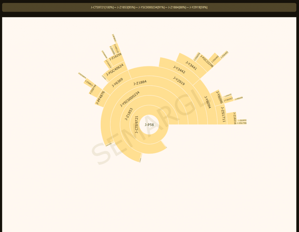 Adam > A0-T > A1 > A1b > BT > CT > CF > F > GHIJK > HIJK > IJK > IJ > J > J1 > Z2215 > Z2217 > L620 > PF4816 > L136 > P58 > CTS9721 > Z643 > Z1865 > Z1853 > Z2331 > Z2324 > Z2317 > Z2313 > YSC0000234 > Z1884 > Y2919 > Y6094 > Y6096