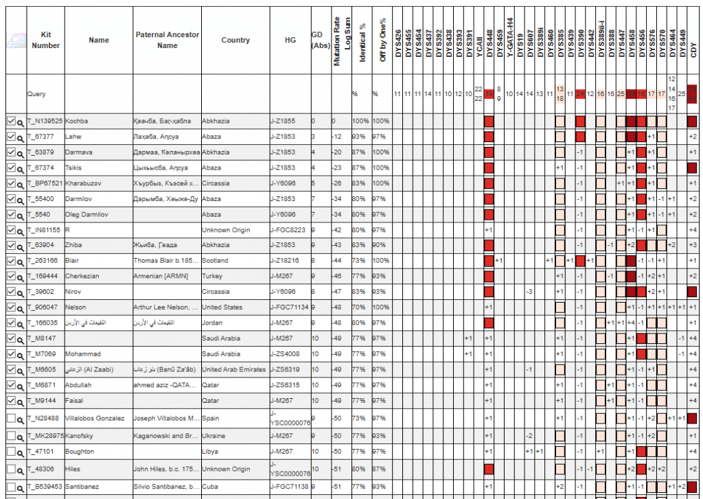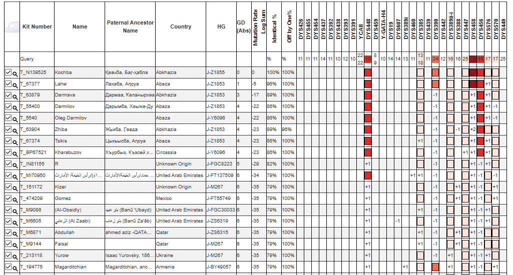 Поиск STR-совпадений в базе STR Match Finder помогает найти потенциальных родственников по мужской линии среди других протестированных из той же популяции. Мерой близости при этом служит генетическая дистанция, зависящая от числа мутационных различий