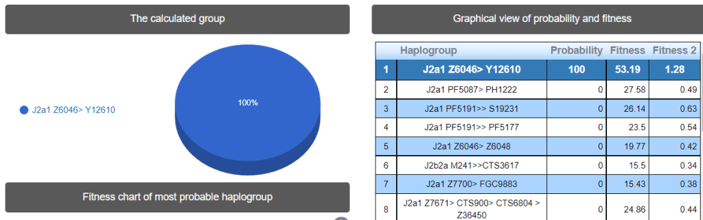 Выявлена гаплогруппа J2a. Наиболее вероятный субклад SK1317 >> Y26650