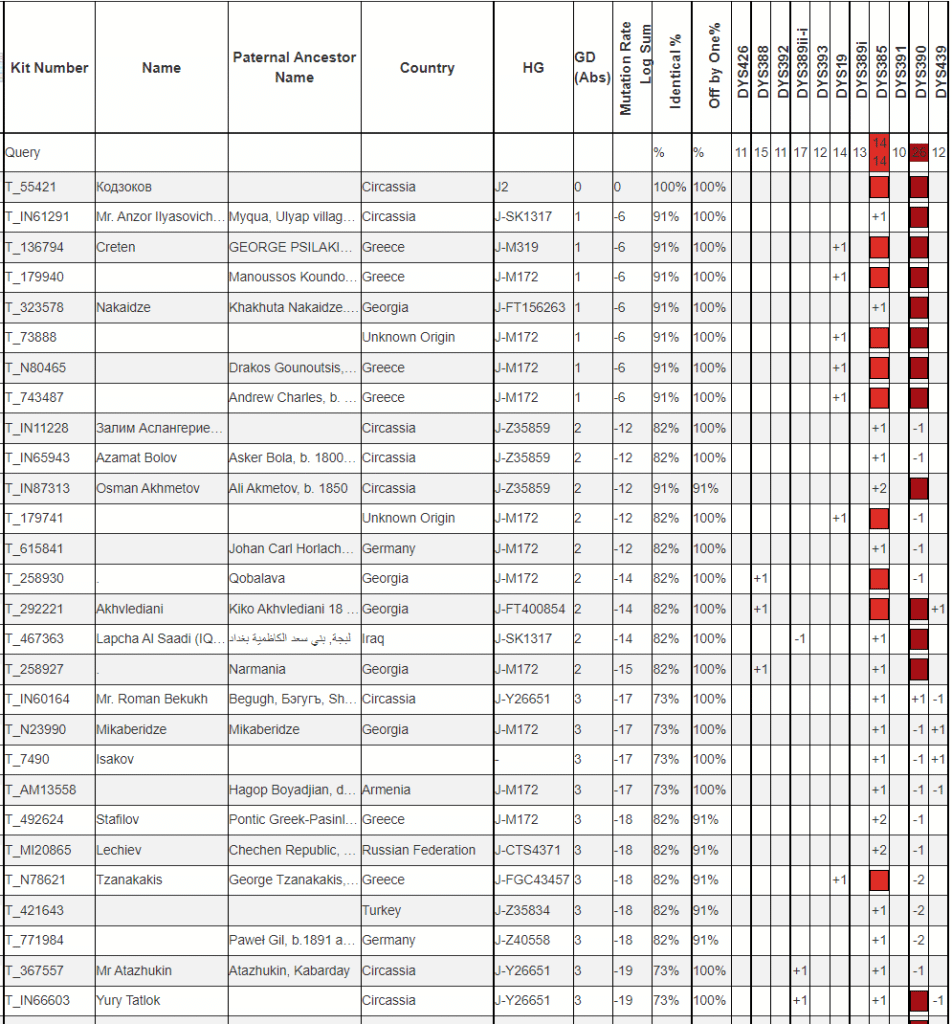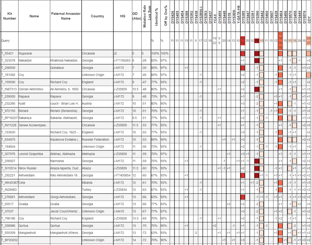 Линии не совпадают. Результаты Кодзокова из Хатуей относятся к самому массовому субкладу гаплогруппы J2. Эта ветка на Кавказе как минимум 10 тыс. лет.