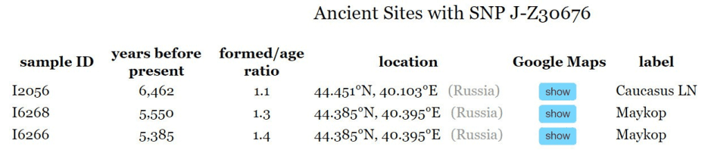 Также интересно отметить, что J-Y11200 (к которому также относятся все J-Y30811) выявлена у представителей Майкопской культуры.