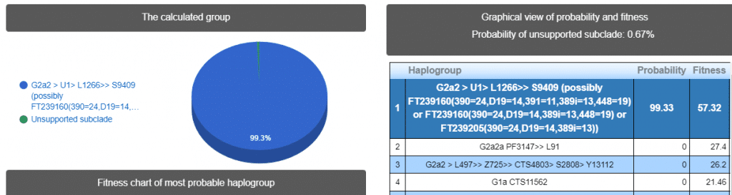 Выявлена гаплогруппа G2a2 G-L1264. Наиболее вероятный субклад FT239488.