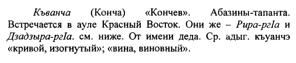 В книге Ионовой С. «Абазинские фамилии и имена» читаем: