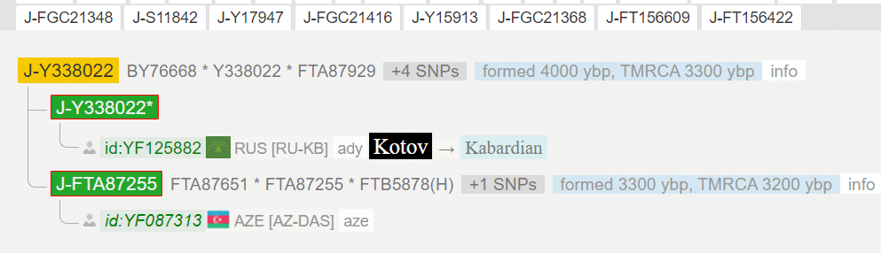 Возраст ветки Y338022 ~3300 лет. Здесь кроме Котова есть еще несколько образцов из Азербайджана. При этом они от Котова на дистанции более 3 тыс. лет.