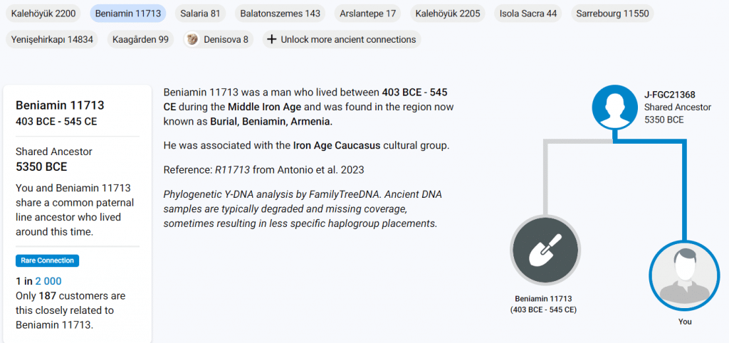 Еще на один уровень выше обнаружен дднк из Армении относящийся к
