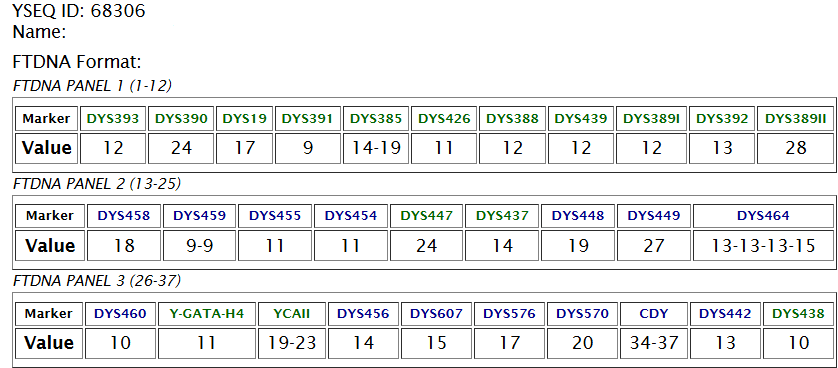 Исследовано 37 маркеров в лаборатории YSEQ.