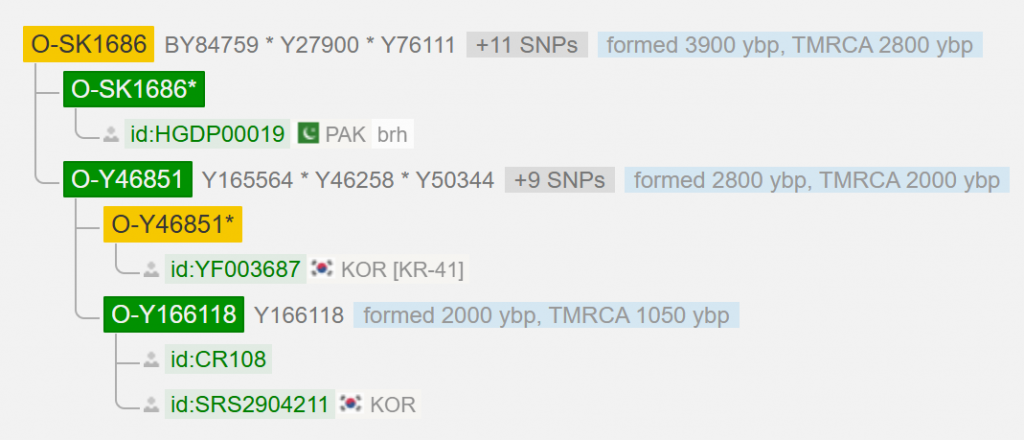 Adam > A0-T > A1 > A1b > BT > CT > CF > F > GHIJK > HIJK > IJK > K > K2 > K-M2308 > K-M2335 > NO > O > M122 > M324 > L465 > IMS-JST002611 > F18 > F117 > Y3272 > F11 > F4062 > Y15976 > Y16154 > Y26383 > Y65456 > Y27894