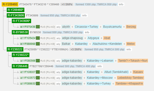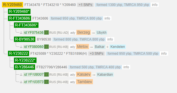 Adam > A0-T > A1 > A1b > BT > CT > CF > F > GHIJK > HIJK > IJK > K > K2 > K2b > P > P-V1651 > P-M1254 > P-P337 > P-P284 > P-P226 > R > R-Y482 > R1 > R1a > M459 > M735 > M198 > M417 > Z645 > Z93 > Z94 > Z2124 > Z2125 > Z2123 > Y934 > BY30762 > Y75187 > BY30764 > BY126933 > Y178665 > BY60213 > FT200426 > Y209460