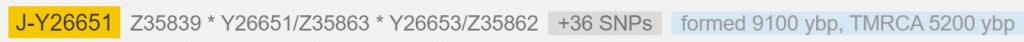 Adam > A0-T > A1 > A1b > BT > CT > CF > F > GHIJK > HIJK > IJK > IJ > J > J2 > M410 > PF4610 > Z6046 > Y12603 > SK1313 > Y12378 > Y27964 > SK1317 (Y26651) > Y26654 > Y26650 > Z35859
