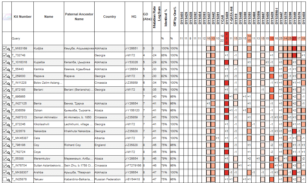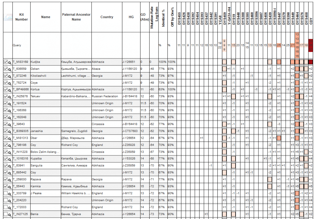Потенциально близки абхазы Купалба, Камкиа (Садзуа) и анонимный образец из Мегрелии.
