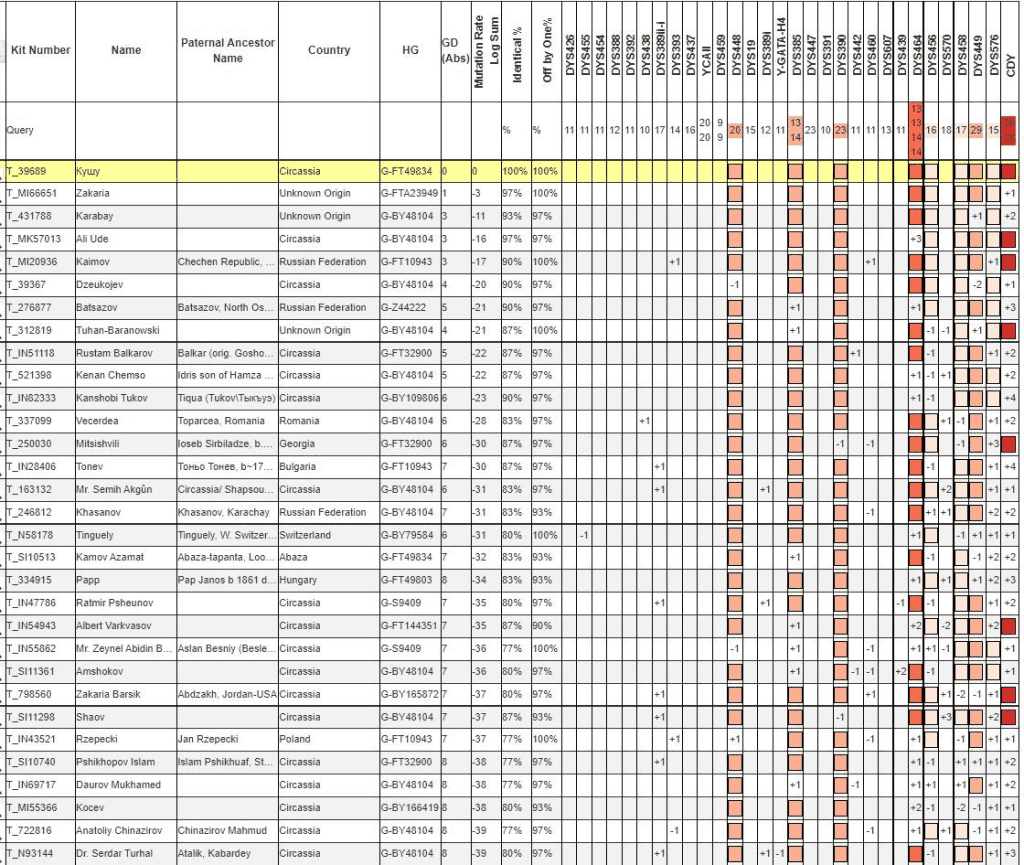 Как известно, фамилия распространенная среди бжедугов. Соответственно, при тестировании остальных линий большая вероятность гетерогенности, то есть различного происхождения.