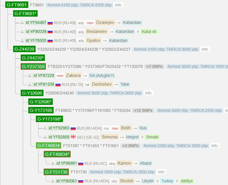 Гаплогруппа G2a2. Наиболее глубокая выявленная линия G-L1264 > G-FT9681