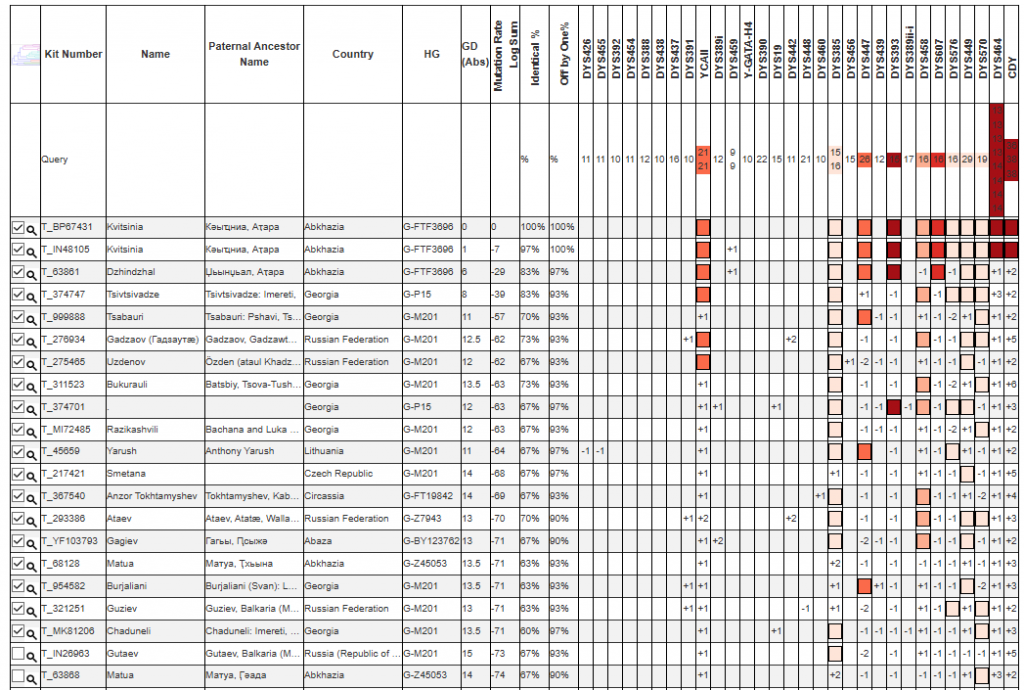 Выявленная гаплогруппа (G2a1) на Кавказе связана в первую очередь с Кобанской культурой, а также поздними аланами, в контексте Абхазии ее можно связать с племенем мисимян.