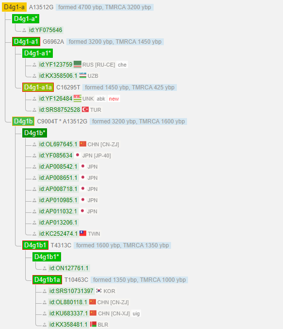 Выявленная митихондриальная гаплогруппа D4g1-a1a