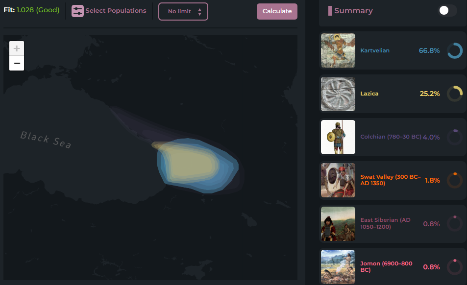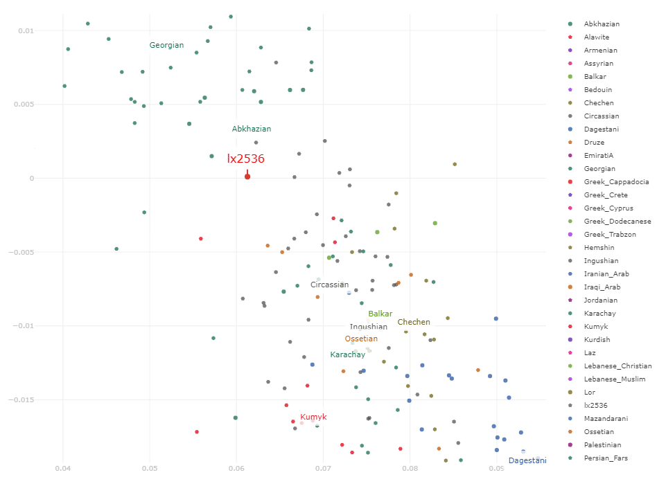 Выявленная гаплогруппа G2a1 на Кавказе в первую очередь связана с Кобанской культурой и поздними аланами, в контексте Абхазии ее можно связать с племенем Мисимиян.