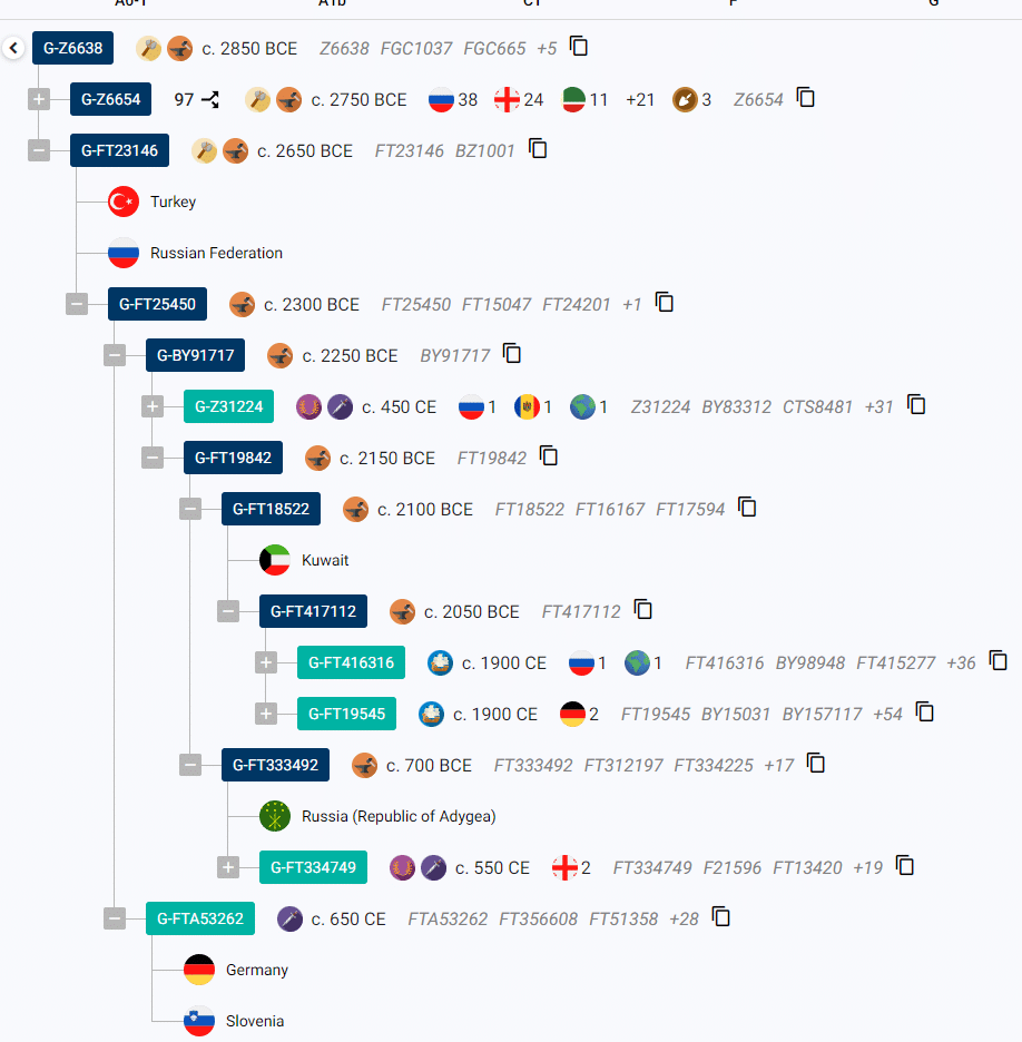 По ссылке подробная информация по G2a1 в целом. История, разные линии, филогенетическое древо.