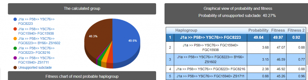 Выявлена гаплогруппа J1. Наиболее вероятный субклад J-P58 >> Y2919 >> Y6096