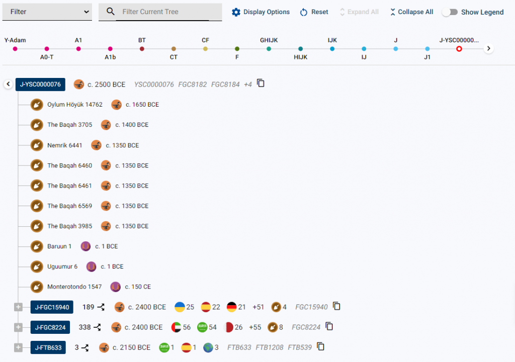Adam > A0-T > A1 > A1b > BT > CT > CF > F > GHIJK > HIJK > IJK > IJ > J > J1 > Z2215 > Z2217 > L620 > PF4816 > L136 > P58 > CTS9721 > Z643 > Z1865 > Z1853 > Z2331 > Z2324 > Z2317 > Z2313 > YSC0000234 > Z1884 > Y2919 > Y6094 > Y6096
