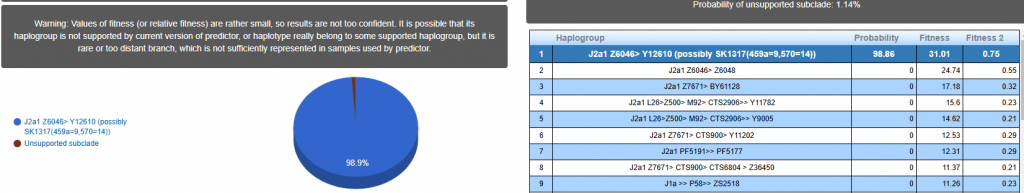 Выявлена гаплогруппа J2a. Наиболее вероятный субклад SK1317 >> Y26650 > Z35859