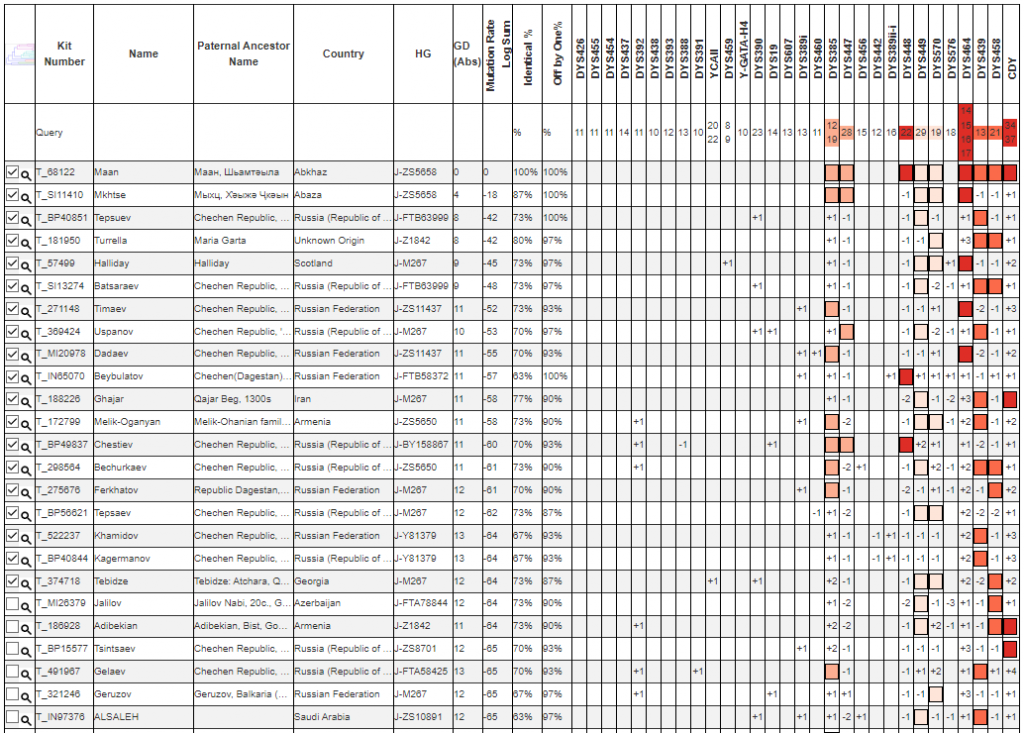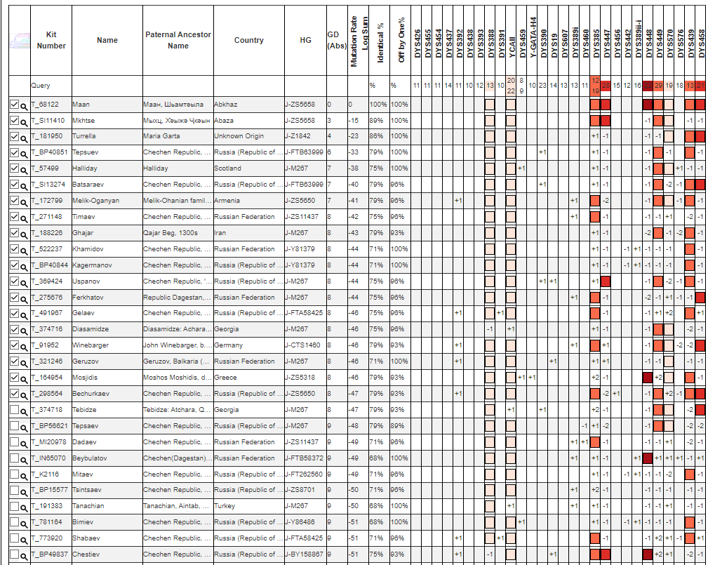 Протестированный принадлежит к сирийской абхазской диаспоре, по результатам теста он не совпал с двумя ранее протестированными представителями дворянского рода Маан, тем не менее группируется с абазинским родом Мхце (Мыхц).