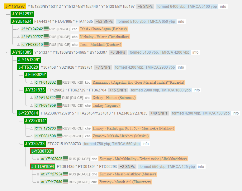 Выявленный субклад и соседние ветви характерны для народов нахско-дагестанской языковой группы.
