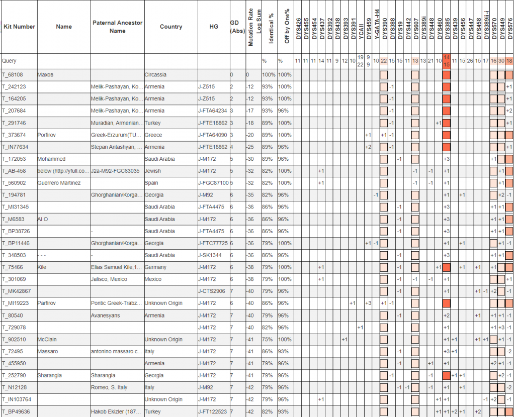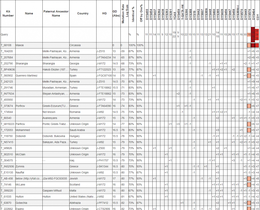 Поиск STR-совпадений в базе STR Match Finder помогает найти потенциальных родственников по мужской линии среди других протестированных из той же популяции. Мерой близости при этом служит генетическая дистанция, зависящая от числа мутационных различий